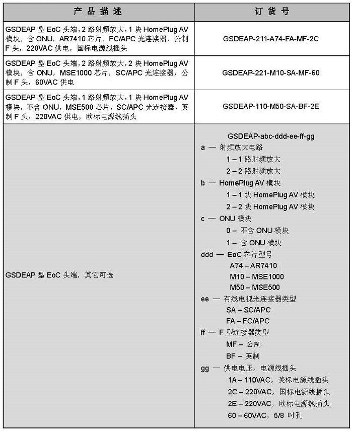 GSDEAP 是同軸電纜以太網中的頭端設備。它向同軸電纜以太網中的終端設備(EP) 提供有線電視信號的直通通道和以太 網數據的調制信號。